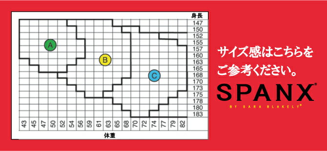 ブランド SPANX 商品名 Super Shaping Sheers サイズ/約cm [サイズ A] ・体重:43〜57kg ・身長:147〜165cm [サイズ B] ・体重:52〜68kg ・身長:147〜175cm [サイズ C] ・体重:64〜82kg ・身長:150〜183cm 素材 ナイロン85% ライクラスパンデックス15% ご注意点 ※本商品は、素肌に着用する為、衛生的な理由から返品・交換は一切できません。