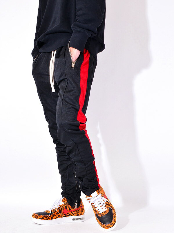 mnml ミニマル パンツ トラックパンツ メンズ レディース スリム ストレッチ ユニセックス TRACK PANTS ジャージパンツ ラインパンツ ロングパンツ 裾ジップ ストリート スポーツ カジュアル ダンス 17ML-AW271P M2017-P271-BLK